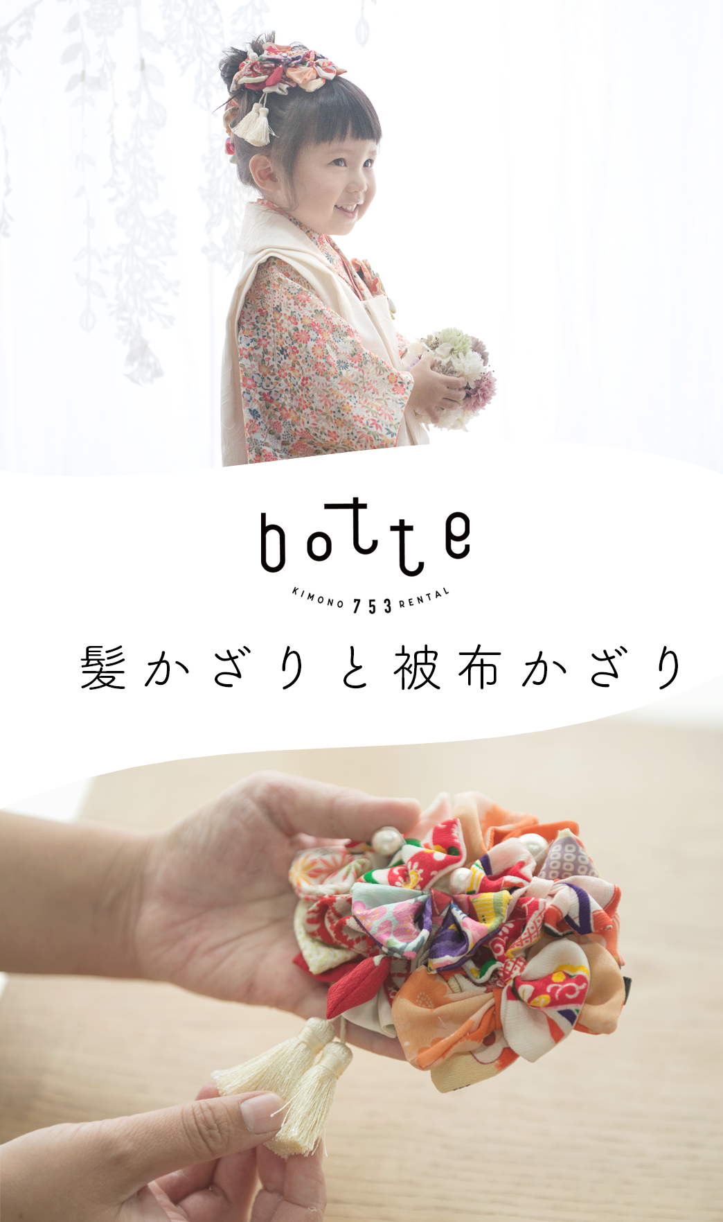 botteでは着物の色味などにあわせて、髪飾りまでトータルでコーディネートしております。