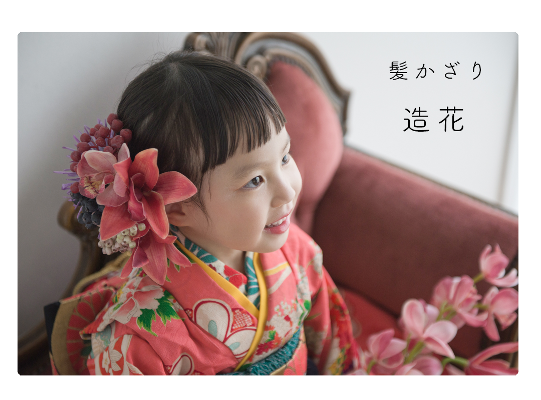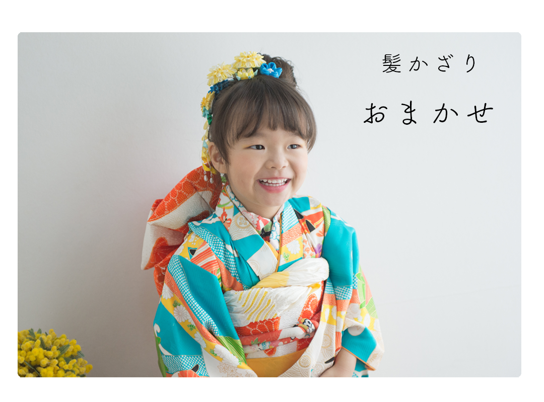 おまかせを選ばれると、つまみ細工の髪飾りをセットしておりますが、こだわり派のあなたのために、選べるオプションをご用意しております。